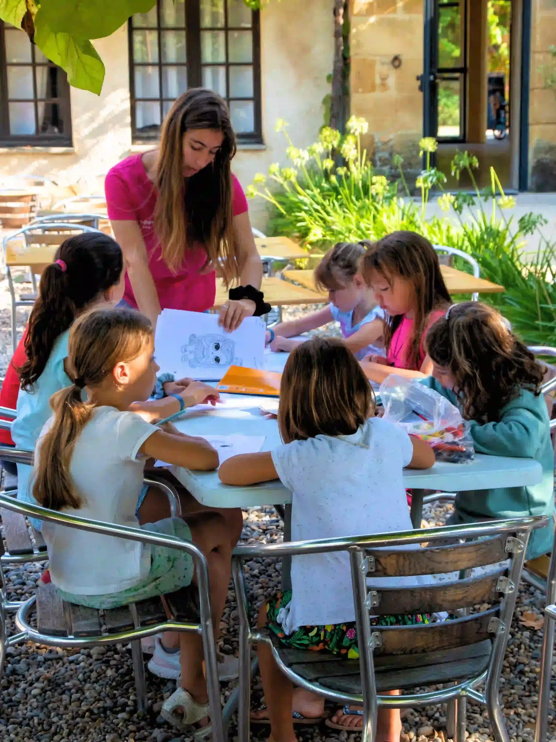 Une aire de jeux avec des toboggans et une cabane en bois leur permettent de s’amuser tout au long de la journée.